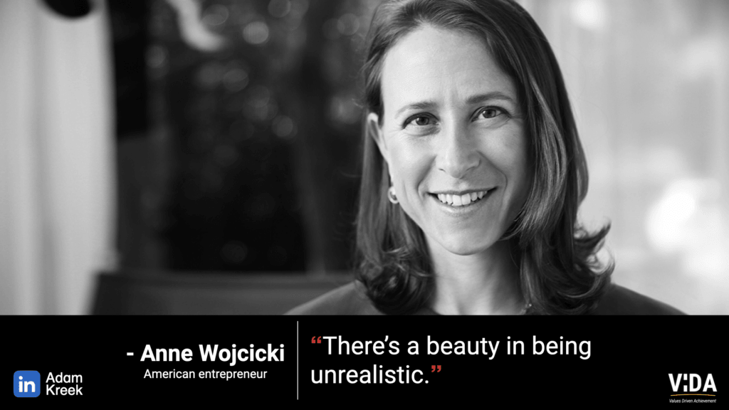 Anne Wojcicki co-founded 23andme, a genetic testing company, because of her burning desire to better understand human health. “We’re not just looking to get a venture capital return,” Wojcicki said. “We set out with this company to revolutionize health care. Genetics is part of an entire path for how you’ll live a healthier life.” Her emotional intelligence drove her to create one of the most compelling biotechnology companies of the past decade.