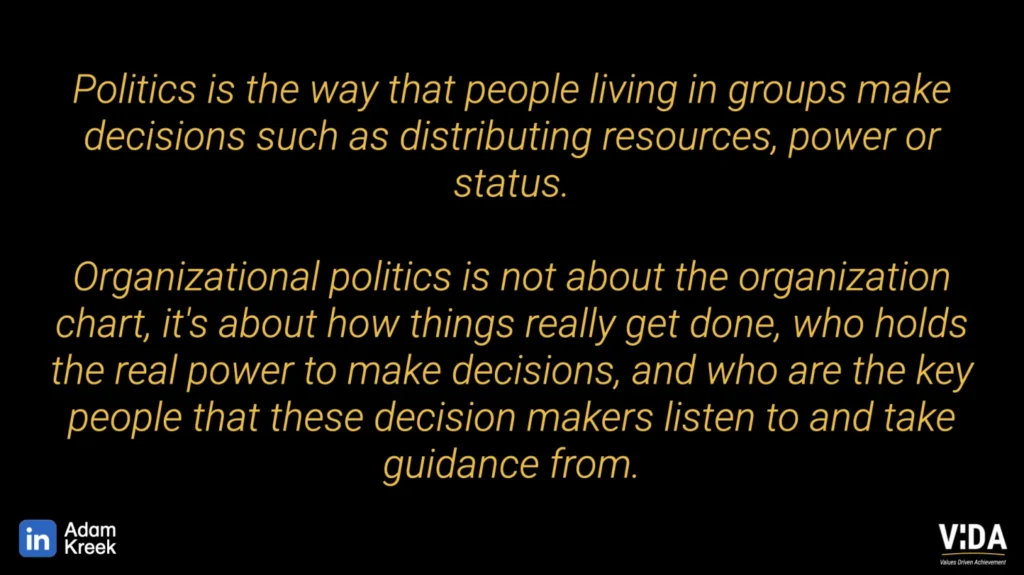 Organizational politics isnāt about the org chartāitās about how decisions really get made. Who has the power? Who do decision-makers trust? Who gets listened to?