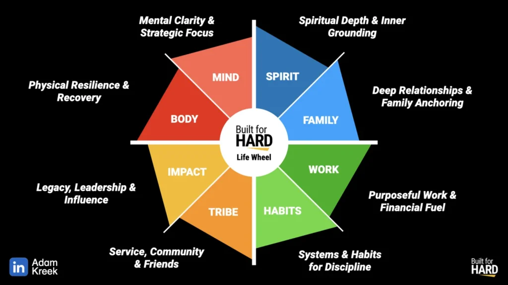 If you’re building a business, leading a team, or navigating big life decisions, you need a tool that cuts through the noise. The Built for Hard Life Wheel brings your blind spots into the light—so you can lead from a place of strength, not exhaustion.